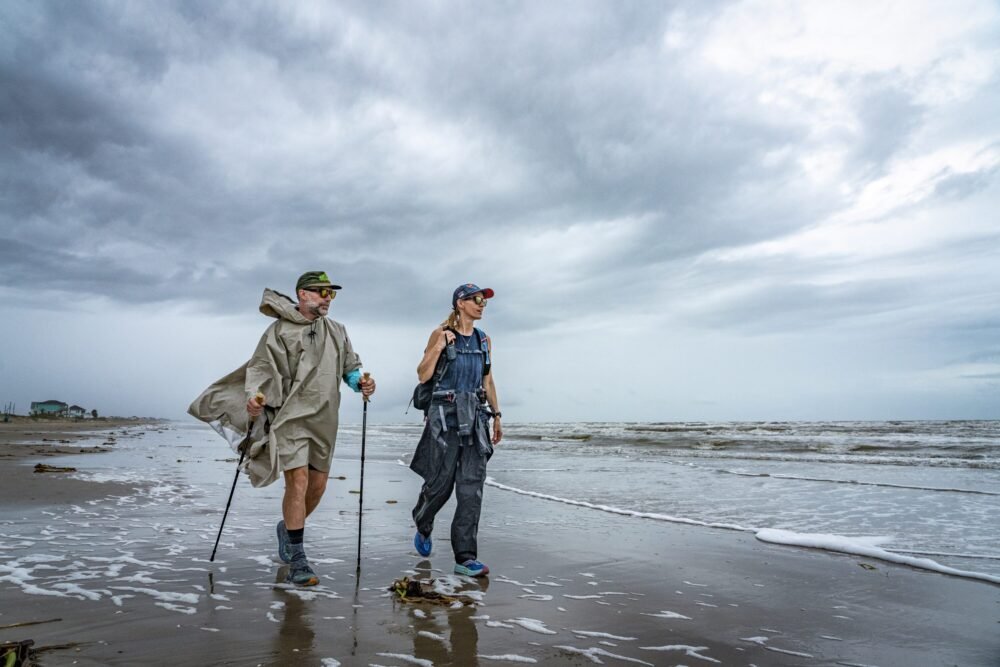 Chrissy and Jay Kleberg hiked Texas’ 370 miles of barrier islands over 21 days in October 2023. They embarked on this journey to learn more about the rate of change along the coast, hear from residents and experts about the rich diversity of wildlife, habitats, and history, and understand what the future holds. They captured the adventure in an award-winning six-part series for public media and published a book called Chasing the Tide.